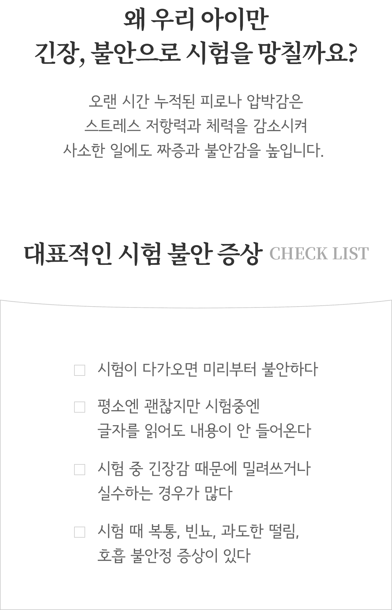 불안감, 스트레스 완화로 학업집중력을 올립니다.